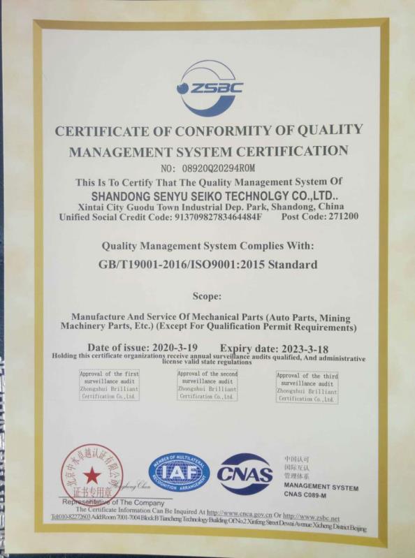 山東森宇精工科技有限公司成立于2005年,位于五岳獨(dú)尊的泰山腳下,經(jīng)濟(jì)發(fā)達(dá)、交通便利。是一家集科研、生產(chǎn)、銷售于一體的國(guó)家高新技術(shù)企業(yè),占地60000多平方米,建筑面積46000平方米,職工100余人,其中專業(yè)技術(shù)人員28名,碩士生6名,博士生2名。主要從事三個(gè)板塊的生產(chǎn)制造業(yè)務(wù):一、近凈成型精密鑄造及高端精密加工業(yè)務(wù);二、礦山智能化設(shè)備制造業(yè)務(wù);三、健康凈水系統(tǒng)裝置生產(chǎn)制造業(yè)務(wù);先后通過ISO9001、CE/PED等國(guó)際體系認(rèn)證,產(chǎn)品遠(yuǎn)銷歐盟、美國(guó)、韓國(guó)、日本等發(fā)達(dá)國(guó)家和地區(qū),并為全國(guó)各大礦山企業(yè)提供配套產(chǎn)品和服務(wù)。