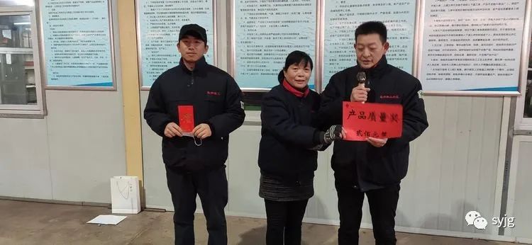隨后,王副總公布了獲得產(chǎn)品質(zhì)量獎的獲獎名單:孫文孝,趙勇,范慶新,李長環(huán),孫濤,劉淵,張進,徐波,陳士柯,朱濤,魯克峰,郭馨濤,陳騰飛,趙宗萬,陳新躍,陳維貴,張玉忠,蔣學良,梁立云,王西平,范文濤,郝尚強,李長禮,陳威傳,楊秀紅,王現(xiàn)軍,陳召明,王廣泛,張金廣,陳長靜,王晨,李煥君,萬文軒,共34人,每人獎勵200元現(xiàn)金。部分奮斗在夜班崗位上的員工未能參加領獎儀式,向他們表示辛苦了!