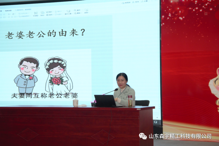 2022年3月7日,山東森宇精工科技有限公司在新辦公樓多動能廳舉辦了《智能時代的女性》傳統(tǒng)文化講座活動。慶?!叭恕眹H婦女節(jié),傳承中華文化,弘揚(yáng)傳統(tǒng)美德,營造文明祥和的社會氛圍。